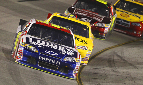 The first caution of the night flew on lap two after Andy Lally got into the wall. No one hit pit road except Mike Bliss because well, the race just started ¾ miles earlier. McMurray led the field to green on lap six, with Johnson, Reutimann, Mark Martin and Clint Bowyer rounding up the top-five.